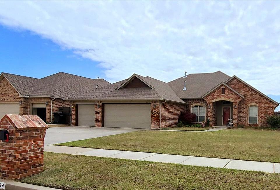 Beautiful home with 3 beds +study, 2 bath, 3 car garage with storm shelter. Great location that is just minutes from shopping and wonderful restaurants and the new overpass at 34th. Kitchen has granite counter tops, SS appliances, island- You'll love how big it is. Study with french doors and wood floors, a lovely gas fireplace surround and niche above. The secondary bedrooms are a great size, and the Master bedroom has a designer 2-tone accent wall and architectural ceiling. The covered patio overlooks the yard and the swing set and storage building will stay with the house. Enjoy the neighborhood lake and walking trails during the stay/work at home orders. Owners are working hard to pack up and make this home ready for you.