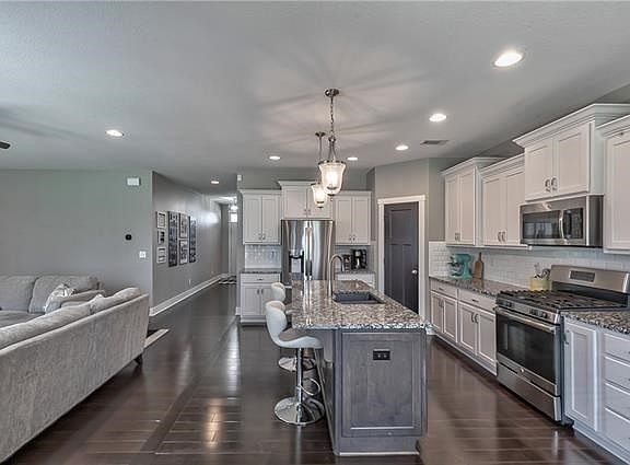 Better than NEW and Ready to GO! Fabulous floor plan - Stunning main level with beautiful kitchen and new high-end wi-fi enabled refrigerator and dishwasher plus recently added engineered hardwoods to complete the look with no carpet! There is a 1st floor bedroom/office and full bath for guests-great idea! Upstairs features lovely master ensuite w/ a cool shower. Also 3 nice size bedrooms, a loft for chilling and a cute bedroom level laundry room - also with new wi-fi-enabled washer and dryer and all of these new appliances are staying! Engineered hardwoods were also added to the loft and hall. Top it off with the finished lower level which includes a media area, a large rec area big enough for a pool table or ping pong table, another bedroom/office with a large daylight window and a full bath. With all of that, there is still a nice storage area. And you are in a beautiful new Lee's Summit neighborhood, close to Longview Lake, easy highway access , great schools and shopping!