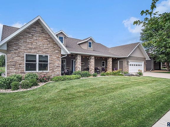 If you would like the ease of having everything on one level or need a handicap accessible home, this is for you! This ranch style home has over 2000 sq ft and is located on just over a 1/4 acre gorgeous lot that backs up to a park with a walking bridge and path. This is a custom built home, unlike any you've seen. A 36 x 12 stamped concrete covered front porch with a trendy fireplace welcomes you home. There is a large entry that has a sitting area with a dormer window for great natural light. Lovely walnut flooring throughout the main living area. The kitchen features knotty alder custom cabinets and has a wonderful pantry with pullout shelves and lots of cabinets. The living and dining room have vaulted ceiling and tons of windows! The living room features a beautiful stone/electric fireplace that you can enjoy year round! The dining area has room for a buffet as well as a large table/chair set. The french door leads to a 44' covered maintenance free deck that overlooks a lush and private yard with no backyard neighbors. Enjoy roll-down shades to keep it cool in the heat of summer. The primary bedroom is massive, has vaulted ceiling, a 10 x 7 walk-in closet w/organizers and a lovely private bath with a large vanity and beautiful tile shower. A convenient 1/2 bath (also built for a storm shelter) for guests is located close to the heated 3 car garage. The garage has a floor drain and hot and cold water and lots of storage. The laundry room has a utility sink and storage cabinets. There are 2 more bedrooms, both with large closets w/organizers and a full bathroom. This home has 9' ceilings! The entire home has in-floor heat. Come check it out, you'll be glad you did!