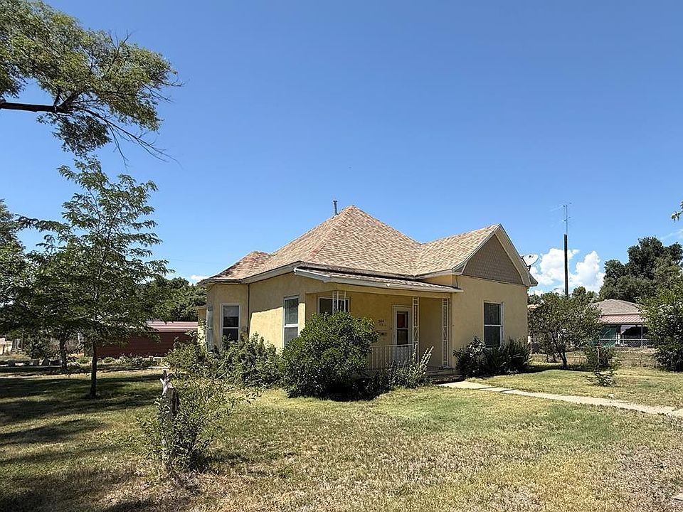 Affordable and move-in ready! This charming 2-bedroom home is just blocks from Crowley County Schools and Conestoga Park, and ideally located only an hour from Pueblo. Bright and airy throughout, with large windows that fill every room with natural light—including a beautiful bow window in the dining room that adds timeless elegance. Additional features include a spacious living room, pellet stove for efficient heating, a bonus mud room, and a desirable corner lot. Outside, you'll find an expansive yard with lush grass, mature trees, vibrant flowers, and plenty of room for a garden. Don't miss your chance to own this affordable, inviting home!