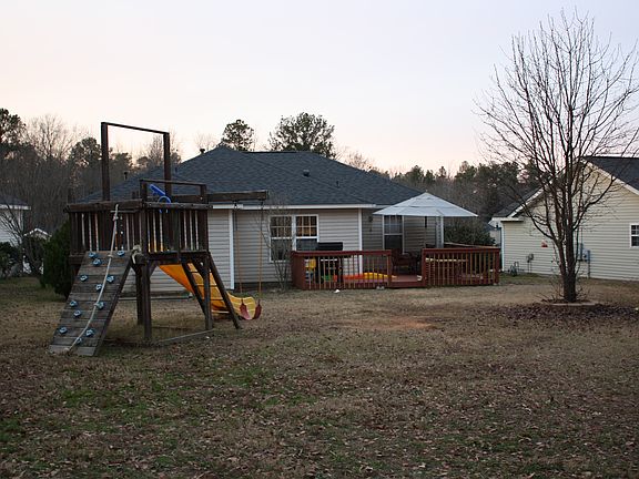 Large level backyard, wooded in back. Tile Flooring in kitchen and baths. Large open kitchen. Beautiful hardwood flooring in living room and master bedroom. Low Maintenance vinyl. Excellent home for first time buyers!
