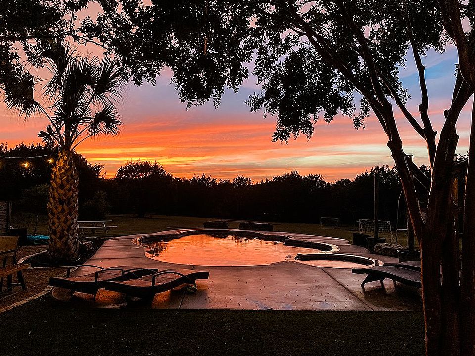 Beautiful Homestead. A taste of country living in the beautiful Texas Hill Country. Plenty of space for social distancing and plenty of fresh air. This home is made for outdoor entertaining with an in-ground pool and hot tub. This home has drought deer tolerant landscaping with beautiful wildflower gardening through out the yard, it backs up to a green belt for even more isolation. The house has been freshly painted throughout. The city water system is available to the property. Excellent Schools!!