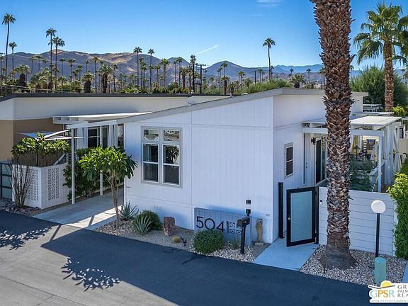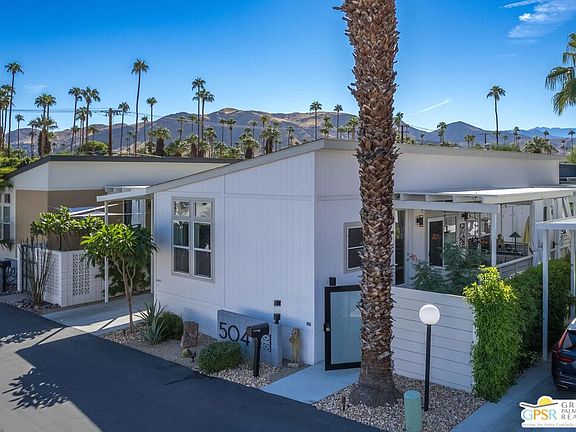 Desirable South Palm Springs location at the Palm Canyon Mobil Club. Resort style living in this premier mobil home community. This contemporary, move in ready manufactured home is furnished and waiting for your arrival. Seamless indoor / outdoor living in this quality home with sliding glass doors to both decks. Perfect for entertaining. Two bedroom two bath with good separation. Two car tandem carport. The park includes a clubhouse, heated pool, spa, fire pit, fitness center, shuffleboard and 2 dog parks. Close to all the great shops and restaurants downtown Palm Springs has to offer. Wonderful community feeling. 504 Tiki is perfect for a getaway or full time residence.