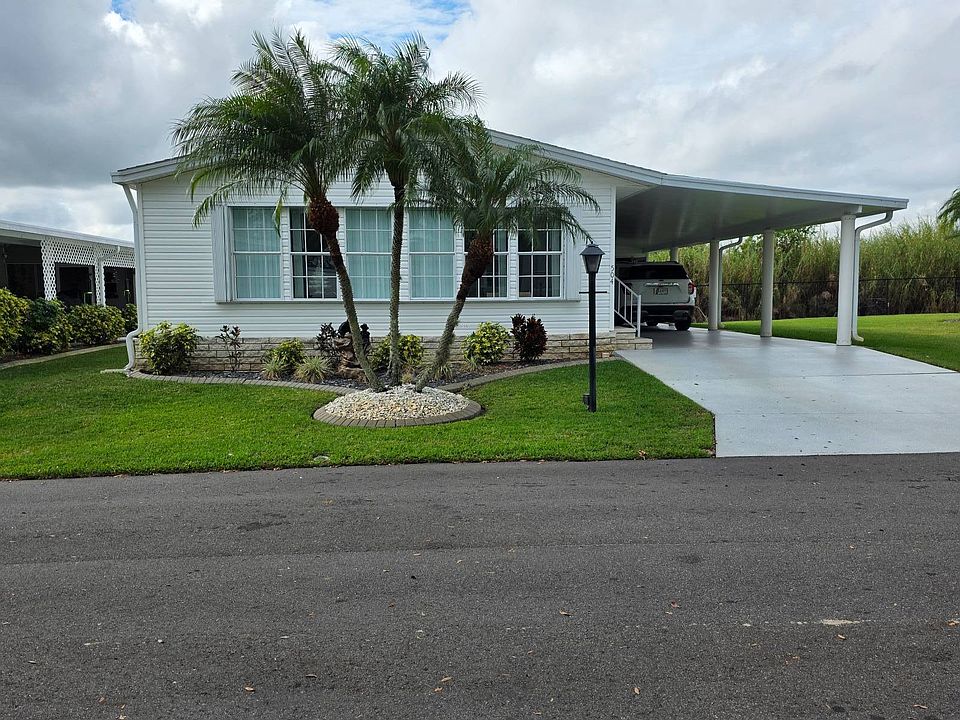 This 2-bedroom, 2 bath home has 1584 sq ft of living space. The home is drywall throughout with extra insulation, Laminate plank flooring throughout the home except for the guest room which is carpeted. Ceiling fans in all rooms. Carport roof has insulated panels making it cooler in the summer and the driveway itself has a new coating and can hold 3 vehicles. The utility shed is insulated and has peg board, cabinets, work bench, extra lighting and soft floor covering. Hurricane shutters on the front and side windows. A/C unit was replaced in 2024, hot water heater replaced in 2017. Factory vapor barrier under the house and also under the laminate flooring. Don't overlook this gorgeous home!