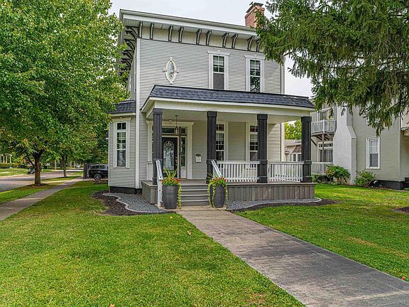 Seeking moody, eccentric, and a total vibe all in one? This showstopping two story corner lot showplace home is truly unlike any other property in town. Walk in the front door and be stunned by the gracious open living/dining concept host to amazing floor space, captivating natural light, center fireplace, trey ceilings, and curved staircase with recessed nooks. Main floor also features a fully equipped kitchen with brand new granite countertops, stainless appliances, butlers pantry, beveled glass, adjacent laundry facilities, and breakfast bar area, expansive rear family room with a center gas log fireplace, and a remarkable master suite with two closets (one large walk-in) and an adjacent full tiled bath host to granite countertops, jacuzzi tub, and a tiled walk-in shower. Take a trip up the curved staircase and find two additional large bedrooms -- each with their own sitting rooms -- one with a gorgeous curved archway -- the other with a built-in desk -- and a second full hall tiled bath. Property also features a large usable basement, covered front porch, dream covered rear deck, privacy fenced backyard, two car detached garage, central vacuum system, two water heaters, custom Hunter Douglas window treatments throughout and SO many improvements -- professional paint throughout (Integrity Painting), all new flooring (carpet was custom), new fixtures, new central air unit (2023), enhanced landscaping (Bee's), various roof improvements (Vertex) -- a fascinating property!