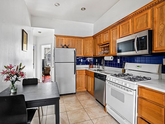 Decorative fireplaceAbundant natural lightGenerous closetGorgeous solid hardwood floorsWindowed eat-in kitchenLovely tree-lined street views