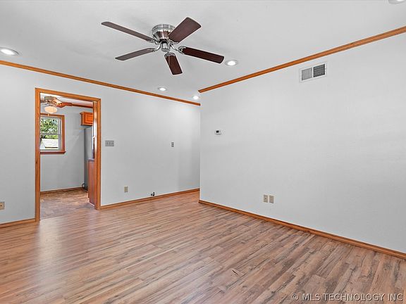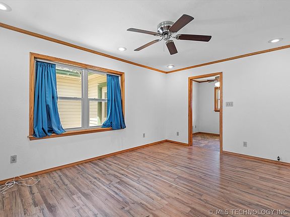 Check out this HUGE list of new improvements in this move-in ready property in Nowata: New kitchen appliances, including refrigerator, gas stove, microwave, dishwasher; new laminate flooring throughout living area and all bedrooms, new interior paint, Hall bath has new vanity, toilet, and bathtub. A partial vapor barrier was installed in crawl space, and all old insulation removed from attic and replaced with brand new insulation! Need space to park a boat, RV? This corner lot has easy access into backyard, and a nice storage shed.