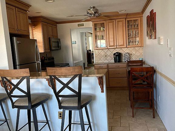 The updated kitchen offers sleek countertops, stainless steel appliances, and plenty of storage for all your seaside essentials. The primary suite includes a private bath and generous closet space, while two additional bedrooms provide room for family, guests, or a home office.