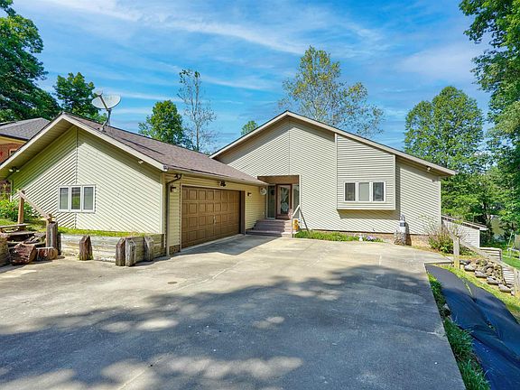 New listing on Christmas Lake! This home features 3 bedrooms and 2.5 bathrooms, an open kitchen and living area, and a main level master suite with views of the lake! There is a potential 4th bedroom attached to the master bedroom that is currently being used as a nursery, but would also make a great office space. The living area and the master both have access to the patio overlooking the shady backyard and private dock. In the partially finished basement you'll find another living area, two additional bedrooms, a screened in porch, and a second garage accessible from the backyard; a perfect place for your lawn mower or golf cart! Make this house your home just in time to enjoy summer on the lake! Home is being sold as is.