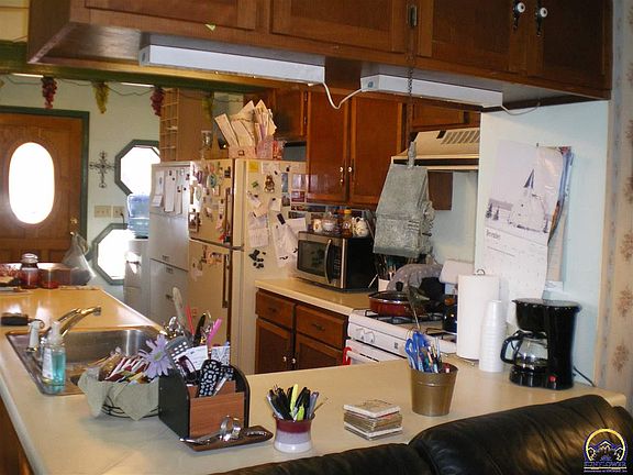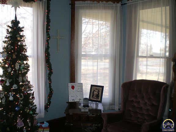 Beautiful woodwork thru out, Hardwood floors, 9' ceilings some newer windows, there is a real neat sitting room, Attic Master, Detached garage with newer door. Overbrook is a town 30 minutes from Topeka with two banks a grocery store, coop, auto parts, New library, swimming pool, tennis courts, baseball, school, new Dollar General, walking trails, fishing in City lakes, Churches of different faiths, minutes from Three Federal reservoirs with boating fishing and camping, come see