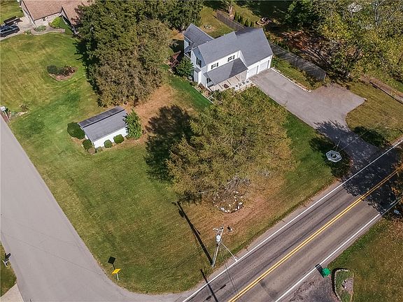 Adorable 3 bedroom farmhouse on over 1/2 an acre table-top lot! Large deck. Many updates including windows, HVAC and more. Newer HW floors in Living Room, newer gas insert for fireplace, updated front door and storm door, custom blinds. Floor plan is open to the eat in kitchen with breakfast bar, ceramic floors. Sliding doors to large deck. Mudroom. 2nd floor has hardwood in original portion, laundry. Loft area great for extra tv room or den. 2 car attached garage. Lots of additional parking. Large shed w electric available. Great location!
