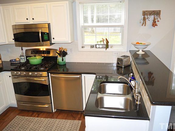 Meticulously maintained home with new HVAC (2016), roof (2017) & paint (2018) inside & out! Low maintenance fiber cement siding, updated eat-in kitchen with granite countertops & tile backsplash, laminate flooring all downstairs, large living room with gas log fireplace & surround sound speakers, storm doors, spacious master suite w/ walk-in closet, double vanity, garden tub & walk-in shower! Huge fenced backyard overlooked by deck & patio - plenty of grass to play on & shade to relax in. Finished garage