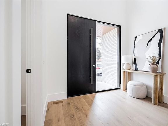 Sleek modern silhouetteOpen concept main floorHigh-end fiberglass windowsOversize islandWolf gas rangeCustom white oak cabinetryStone countertops