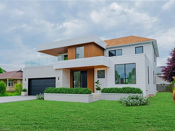 This newly built home is perfectly tailored for the discerning buyer, who appreciates the blend of contemporary design, expert craftsmanship, and high-performance luxury. It demands your attention, with it's sleek, modern silhouette while featuring bright, airy interiors that have been meticulously finished with no expense spared. A true architectural masterpiece, enter into the foyer to find soaring ceilings, Italian White Oak hardwood flooring, and open concept main floor bathed in natural light through the high-end fiberglass windows. The eat-in kitchen features an oversize island, Wolf gas range, custom white oak cabinetry, stone countertops, Butler's pantry, and walkout to a covered rear porch, perfect for summertime dinners. The main floor is completed with a spacious living room, formal dining room, and mudroom with access to the garage and laundry area. Upstairs, the large primary suite offers a luxurious retreat with a spa-inspired ensuite bathroom with heated Terrazzo flooring, a grandiose walk-in closet, and a large, private covered balcony—perfect for enjoying morning coffee while looking towards the lake. The two additional bedrooms each have their own ensuite bathrooms with heated Terrazzo flooring and walk-in closet, providing comfort and privacy for family or guests. The expansive, partially finished basement boasts 9' ceilings, large windows bringing in ample natural light, and continuous spray foam insulation, providing a versatile canvas for your personalized finishing touches. This home is custom-built by the reputable Tarion-registered builder Rockpointe Custom Homes, offering peace of mind with the security of a full Tarion Warranty. Located in the gateway to the Niagara region, Winona is perfect for those who are looking to enjoy the many fabulous restaurants, wineries, and shops of Niagara has to offer. Its also home to the 50 Point Marina, 50 Point Conservation area, & Winona Crossing shopping area with Costco, LCBO, Metro & more.