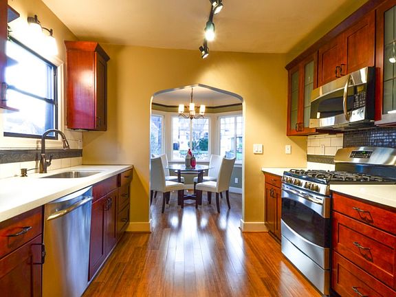 Gorgeous 1920's Tudor has been remodeled inside & out. Sited on a wonderful street of classic homes, this gem has traditional living & dining rooms detailed w/ leaded glass, coved ceilings, & picture rails. The stunning kitchen has new GE profile appliances, quartz counters, & tiled backsplash. Amazing vaulted ceiling master-suite w/ a beautiful master bath, walk-in-closet, & attached office. Classic homes rarely have a media room of this size. New electrical & plumbing! 1 Year Home Warranty!