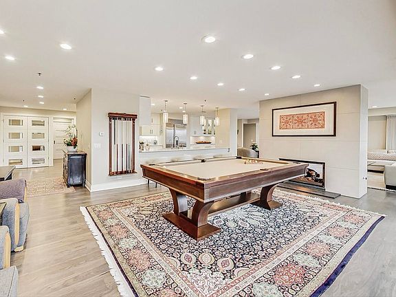 Welcome to this stunning, one-of-a-kind 3,600 sq. ft. penthouse in the highly sought-after Optima Meadowlake complex. This 4-bedroom, 3-bathroom home has been completely gut-renovated with luxurious finishes and thoughtful details throughout. The open floor plan features an expansive living and dining area, floor-to-ceiling windows, a two-sided gas fireplace, and a chef's kitchen with Viking, Sub-Zero, Thermador, and Miele appliances, plus a custom pantry and filtered water in the bar and kitchen. The primary suite is a serene retreat with a spa-like ensuite, custom walk-in closet, and Robern medicine cabinets. Additional bedrooms offer flexibility as offices or dens. Enjoy a northeast-facing terrace overlooking the lake, a west-facing balcony, and private amenities like a large laundry room with Electrolux washer/dryer, two heated garage spaces, and a spacious storage room. The clubhouse, located next to this building, offers a pool, fitness center, and party room. Perfectly situated near biking/walking paths, the Skokie Lagoons, forest preserve, Wilmette Golf Club, and across the street from New Trier's West Campus, this penthouse is truly a rare find.