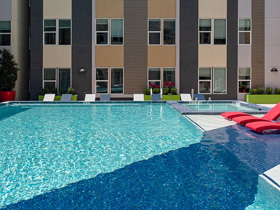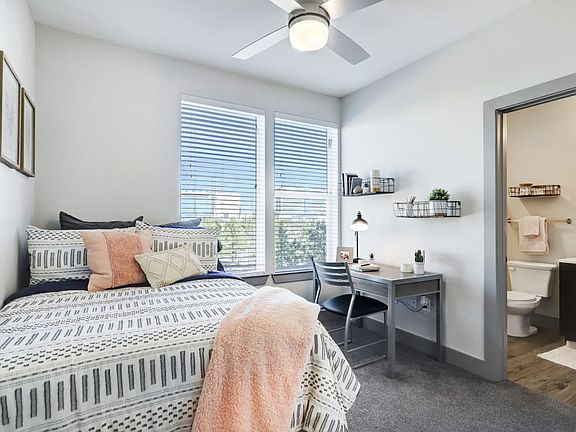 - Exterior features: Barbecue, Bicycle storage, Business Center, Fire Pit with Outdoor Games & Seating Areas, Next to Greek Housing, Pet-Friendly, Study Rooms, Sundeck, TV Lounge