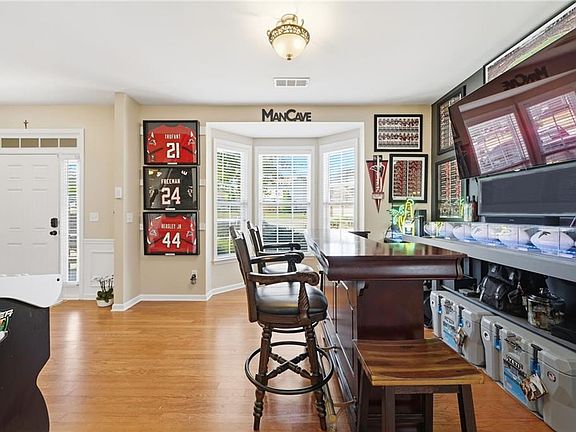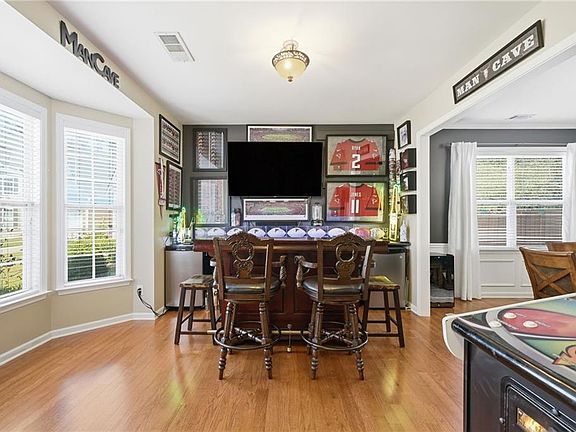 Tucked in a peaceful cul-de-sac with jaw-dropping curb appeal, this home will capture your heart before you even step inside! Located in sought-after Forsyth County, this beautiful home features a newer architectural-shingle roof, two new HVAC and furnace systems, and over $30k invested in luxury bathroom renovations. Built on a slab foundation, offering a long-term structural stability and low maintenance. As you enter, you’re greeted by a bright two-story foyer. To your left is a versatile room currently used as a bar and entertaining space, which can easily be converted back into a cozy sitting area if preferred. A large, separate dining room provides plenty of space for family gatherings and holiday dinners. The kitchen opens directly to the family room and includes a breakfast area, newer microwave and dishwasher, and generous counter space. From the kitchen, step out to the patio with a pergola perfect for outdoor entertaining or relaxing evenings. The fully fenced, flat backyard offers privacy and room to play. The two-car garage provides direct and convenient access to the kitchen, making unloading groceries a breeze. Upstairs, the oversized primary suite includes a sitting area, walk-in closet, and a fully renovated bath with double vanities, a soaking tub, and a separate shower. Three additional bedrooms plus a versatile loft/media room, laundry with newer washer and dryer, and another fully updated bathroom complete the upper level. Forsyth County continues to experience remarkable growth and development, making it one of the most desirable areas. With top-rated schools, expanding retail and dining options, nearby parks, and ongoing community improvements, this area offers the perfect blend of convenience, lifestyle, and long-term value. The neighborhood also features a pool, playground, tennis courts, perfect for staying active close to home. This home has been freshly painted on the exterior (2023), includes a termite bond, and has been lovingly maintained - ready for you to come see in person and move into your new home just in time for the holidays!