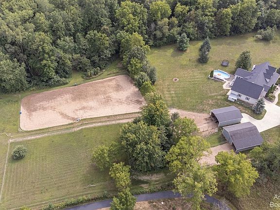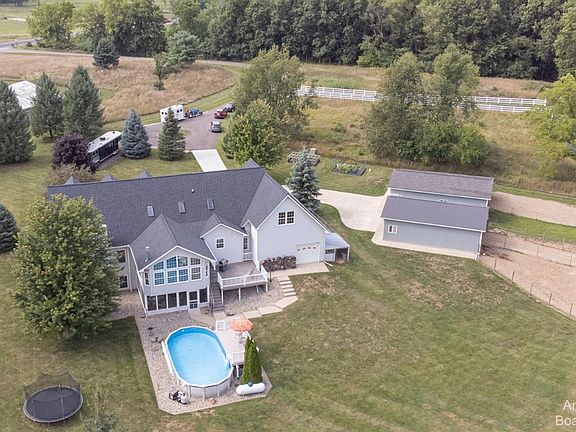 Situated on 7.31 acres in Lodi Township, this beautifully appointed Country home is a rare find for the equestrian! The first floor, with 9 foot ceilings, boasts a large living room with a vaulted ceiling, a custom kitchen with granite counters, and a dining room that opens to a 4-season sunroom with picture-perfect views. The 1st floor Master Suite includes a deluxe bath with walk-in shower, soaking tub, and granite counters. Also on the first floor is a large den, laundry room, and two additional half baths. Upstairs are 3 large bedrooms, a full bath, half bath, loft area, and a 28 x 40 bonus room. The walk-out has a large recreation room, a half bath, workshop, and a 3-season room that's ideal for poolside entertaining. The jumbo garage offers front and back access, along with unique stairways up to the bonus room, and down to the workroom. There is also a geothermal system, a new roof installed in 2019, and maintenance free decking! This impressive equestrian retreat has 3 matted horse stalls with attached run-ins, a 100x200 riding arena, 3 fenced pastures and scenic riding paths. Located off Zeeb Road with easy access to Ann Arbor, Saline, and shopping.
