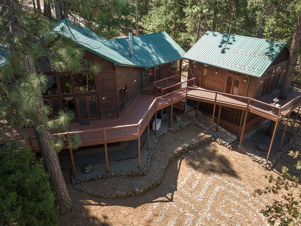 Fantastic price reduction on this quality crafted 3219sf lodge-like custom home built by High Country Builders. The 2391sf main house consists of two primary suites, a great room (gourmet kitchen, dining and living room), 1/2 bath, a family room (or optional third primary suite) and laundry closet. The 828sf guest suite/office (with separate entrance off the deck) consists of a bonus room, a full bathroom and a bedroom. This private 3.27 acre lot nestled in the trees with seasonal stream is located on a quiet street in the Wylderidge subdivision (CC&Rs, but no HOA). Features: 24' knotty pine ceilings in great room, floor to ceiling river rock fireplace, custom terracotta Mexican tile, oak hardwood flooring, insulated garage door, two tankless water heaters, ADT security system, Generac generator, fenced front yard, storage shed and garden area with potting shed. Property also boasts a one-of-a-kind Zen labyrinth, an outdoor amphitheater with seating for 100+ and custom carved bear sculpture. So many updates and features! This amazing property is a MUST see!