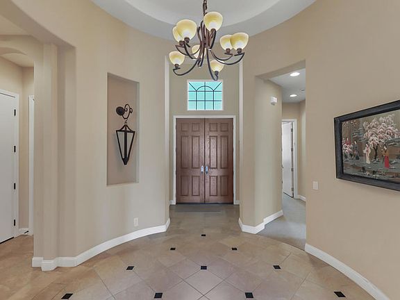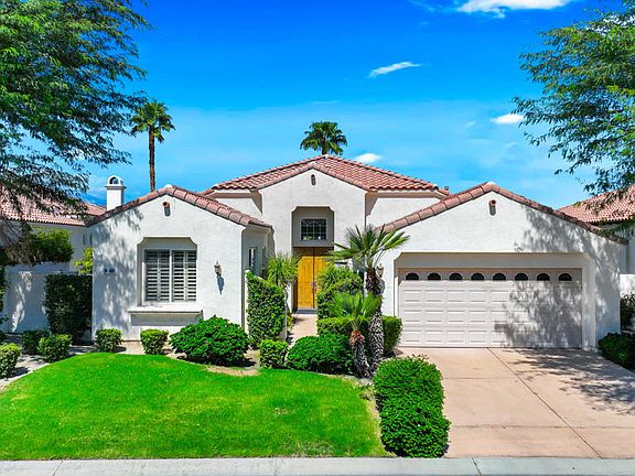 Step into 50405 Verano Drive, a Mediterranean gem crafted for both opulent and relaxed desert living. Nestled behind the gates of Mountain View Country Club, this custom Sedona-model home spans 2,811 square feet and sits on a beautifully landscaped 0.25 acre parcel overlooking the golf course and striking mountain vistas.The front door opens into an extraordinary rotunda foyer crowned with a lighting fixture and sconces. To one side, elegant living and dining rooms flow under high, sweeping ceilings; on the other, a graceful pathway leads to private bedrooms--an ideal enclave for guests, studio, or work-from-home retreat.The heart of the home is its chef-inspired kitchen open to the living room. Beyond its granite counters, prep island, and elite appliances lies thoughtful design: soft-close cabinetry to the ceiling, light-accented wine storage, and seamless access to the formal dining room create a culinary haven. Detailing throughout--from hardwood floors to crown moldings and recessed lighting--speak to timeless comfort.The three bedrooms en suite plus an office with french doors for privacy and flexibility that can be used as an office or 4th bedroom. Yet the true centerpiece unfolds outdoors. Panoramic walls glide open to merge the interior with an entertainer's dream patio: pool and spa with waterfall edge, built-in BBQ and bar, and remote-controlled awnings set the stage for gatherings, lazy afternoons, or serene evenings under desert skies.Security and convenience are intrinsic. A golf cart garage and gated entry provide ease of access, while two to three-car garage space supports lifestyle demands. HOA privileges--cable, fitness, tennis/pickleball courts, clubhouse, maintenance, and more--elevate daily living. 50405 Verano Drive isn't just a residence, it's a desert escape, a social sanctuary, and a sanctuary of luxury. From snow-kissed peaks in winter to radiant sunsets year-round, from spontaneous hosting to quiet mornings by the spa--this is La Quinta living redefined.Whether you're seeking a lavish full-time escape or a low-maintenance second home, this is your gateway to elevated desert living. Did I also mention it has newer AC systems and newer pool equipment!