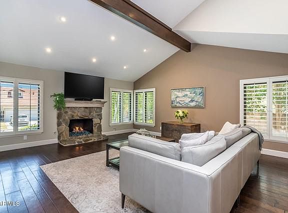 A TRUE GEM...From the moment you walk into this updated light and bright 4bed/3bath home, nestled in Saratoga Ranch in Calabasas, you are welcomed with beautiful double entry wood doors that open to a two-story foyer and living room with a beautiful custom stone fireplace, skylights and hardwood floor. A huge formal dining room sits next to the living room which makes it the perfect open floor plan to move about. The kitchen features custom cabinets, a huge granite center island, Bosch appliances, and Viking cooktop. It conveniently opens up to the warm family room. As you head out to the backyard through french doors, you will find your private backyard oasis with a stunning pool, hot tub, and plenty of space for entertaining. There is a downstairs bedroom and a full bath. Upstairs you will find a bonus loft, three additional bedrooms, and two full bathrooms. This home is in the award winning Las Virgenes School district and is close to the beach, parks, shopping, and restaurants. Do not miss out on this one!