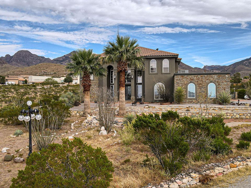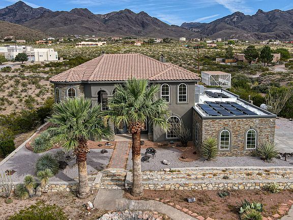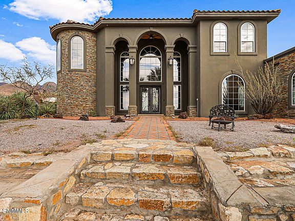 This elegant home located on a Cul de Sac in the Talavera area welcomes you to a lifetime of panoramic, spectacular views of the Organ Mountains, Mesilla Valley & surrounding mountain ranges. Offering the best of indoor & outdoor living this home is the definition of luxurious southern New Mexico living. An east facing, covered patio showcases mountain views & a beautiful pool area This outdoor area guarantees hours of relaxation & entertainment enjoyment. Step inside & you will notice views from all the windows, a sweeping staircase, formal living & dining rooms & more. Move to the heart of the home to appreciate the gorgeous custom kitchen complete with top-of-the-line appliances, quartzite counters, custom cabinets & tile work., Complete with a butler's pantry, breakfast area & a great room open to the kitchen. The spacious primary suite features an exquisite, custom bath. All this & so much more on 2.86 acres!