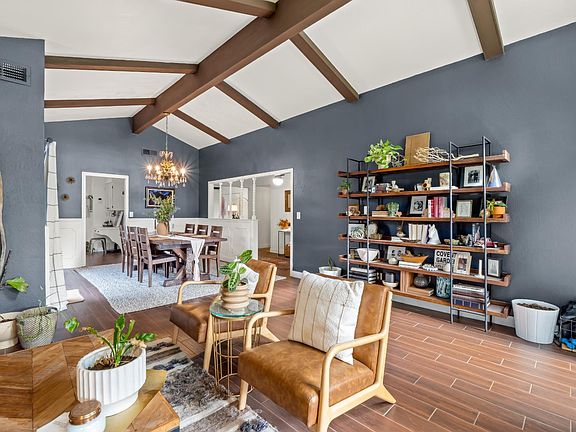 Combining style, comfort, and modern touches, this Sunnyside home is sure to impress! Spanning 2,535 sqft, this home offers multiple living areas and sits on a generous 1/3-acre lot. Upon entering, you are greeted by a beautifully designed living and dining area, featuring vaulted ceilings with exposed beams, wainscoting, and large windows. The family room includes a brick fireplace with a gas insert, a convenient wet bar closet, and direct access to the back patio. There are 4 bedrooms and 3 bathrooms, with one bedroom and bath thoughtfully situated on its own side of the house, perfect for guests or a private retreat. All three bathrooms have been updated with refinished cabinets, granite countertops, and stylish tile.The updated kitchen features refinished cabinets, newer hardware, granite counters, a gas range, and stainless-steel appliances. Additionally, the spacious indoor laundry room provides additional storage. At the heart of the home, a private and peaceful atrium awaits, ideal for relaxing and unwinding. Both front and back yards are perfect for gardening enthusiasts or to simply enjoy the outdoors. Filled with mature trees and beautifully established landscaping, including avocado, pomegranate, blood orange, Valencia orange, pink grapefruit, and lemon trees. Don't miss this opportunity to own a Sunnyside charmer. Schedule your private showing today!