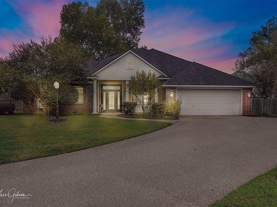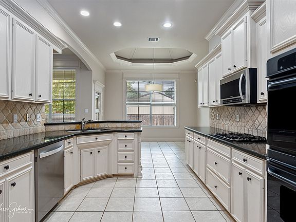 Beautifully maintained 4 bedroom, 2 bath home with approximately 2,200 square feet located on a quiet cul-de-sac with no HOA. This home features vaulted and tray ceilings, detailed trim work, and bamboo flooring throughout the main living areas. The open floor plan includes a spacious living room with a gas fireplace and large windows that fill the home with natural light. The kitchen offers granite countertops, tile backsplash, double ovens, gas cooktop, and plenty of cabinet space. A bright breakfast area overlooks the backyard, and a separate dining room provides an elegant space for entertaining. The primary suite features a tray ceiling, jetted soaking tub, separate shower, dual vanities, and a large walk-in closet with built-in shelving. The additional bedrooms are generously sized and versatile for guests or office space. Enjoy outdoor living on the covered back patio with columns and ceiling fan, surrounded by professional landscaping and mature trees for added privacy. Updates include a roof replaced in 2024 and HVAC and AC replaced in 2020. This home combines quality craftsmanship, comfort, and a great neighborhood in a peaceful setting. sold by owner agent
