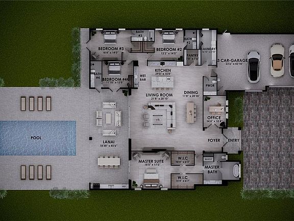 Generous center islandPrivate officeSummer kitchenQuartz countertopsGas rangeStylish wet barGrand double-door entry