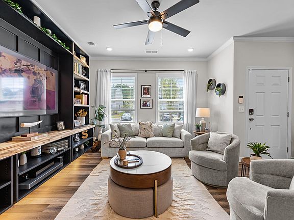 Welcome to Resort Style Living in Raleigh's The Trace at Olde Towne! This 2024-built townhome in Raleigh's desirable 27610 zip code offers modern design, thoughtful upgrades, and resort-style amenities just minutes from Downtown, Walnut Creek, and major highways. Step inside to discover 1,382 sqft of stylish living space, featuring luxury vinyl plank flooring throughout the main level, elegant hardwood stairs with iron spindles, and upgraded lighting throughout. The heart of the home is the chef-inspired kitchen, showcasing quartz countertops, tile backsplash, GE stainless steel appliances (including a gas range!), microwave, dishwasher, and disposal—perfect for both everyday meals and entertaining. The family room shines with a custom built-in entertainment center, while designer trim accents add a touch of sophistication to the dining area and primary suite. Upstairs, you'll find dual primary bedrooms, each with a private ensuite bath, quartz counters, tiled finishes, and spacious walk-in closets—ideal for comfort and privacy. Enjoy outdoor living with a fenced backyard, patio, and extra landscaping, plus direct access to the community trail right behind the home. Community Highlights: Indoor & Outdoor Swimming Pools Clubhouse, Fitness Center, & Arcade Dog Park, Playground, Tennis & Volleyball Courts, Soccer Field Outdoor Fitness Center & Scenic Trails This home combines convenience, style, and endless amenities—don't miss your chance to call Olde Towne home!