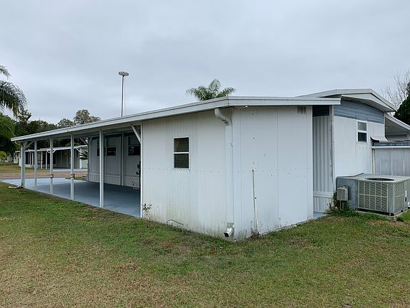 This home is located in a 55+ community with a lot rent of only $665 a month which includes water, sewer and trash plus the use of the amenities! You will have use of the pool, shuffleboard, the club house, billiards, darts, ping pong and several activities! There is also a washer and dryer if needed in the clubhouse! The community is close to several stores, restaurants and medical facilities. Some are within walking distance! All of the neighbors and management in the community are very friendly! There is a metal roof on the home! There are 2 storage sheds and one has a washer and dryer. The attached carport has plenty of room to park 2 vehicles or if you only need room to park 1 vehicle use the back of the carport as a covered patio! Step into this is very cute 1 bedroom, 1 bathroom home with an open floor plan! There are laminate floors throughout the home with the exception of carpet in the bedroom and vinyl in the kitchen, hallway and bathroom. The home has a central A/C and heat unit which cools the home very efficiently and will keep your electric bills low! This home would be a perfect home for a year round resident or would make a great snowbird home! There are finance options available if needed!!!!