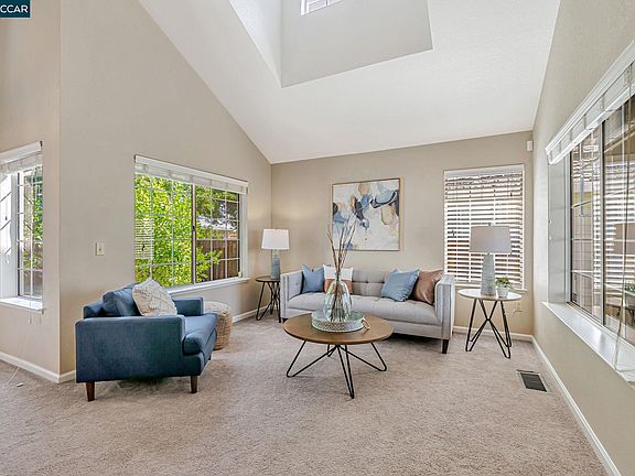 Welcome to the delightful area of Williamson Ranch of Antioch. This beautiful well maintained two story home with an inviting front porch is 1,545 sq/ft on a 5,000 sq/ft lot. Downstairs includes a spacious kitchen with solid stone countertop, stainless steel appliances and gas range, breakfast nook, dining area, family room, living room, vaulted ceilings and 1/2 bath. Three bedrooms and two bath are upstairs. This home includes a Solar System that you own (not leased and no loan), newer roof that was installed at the time of solar installation, security system including cameras and 65" big screen TV, cozy fireplace. A backyard perfect for entertaining with concrete patio. Close to schools, shopping and BART.