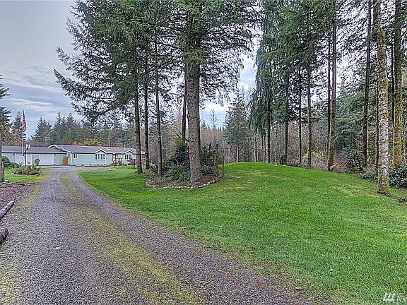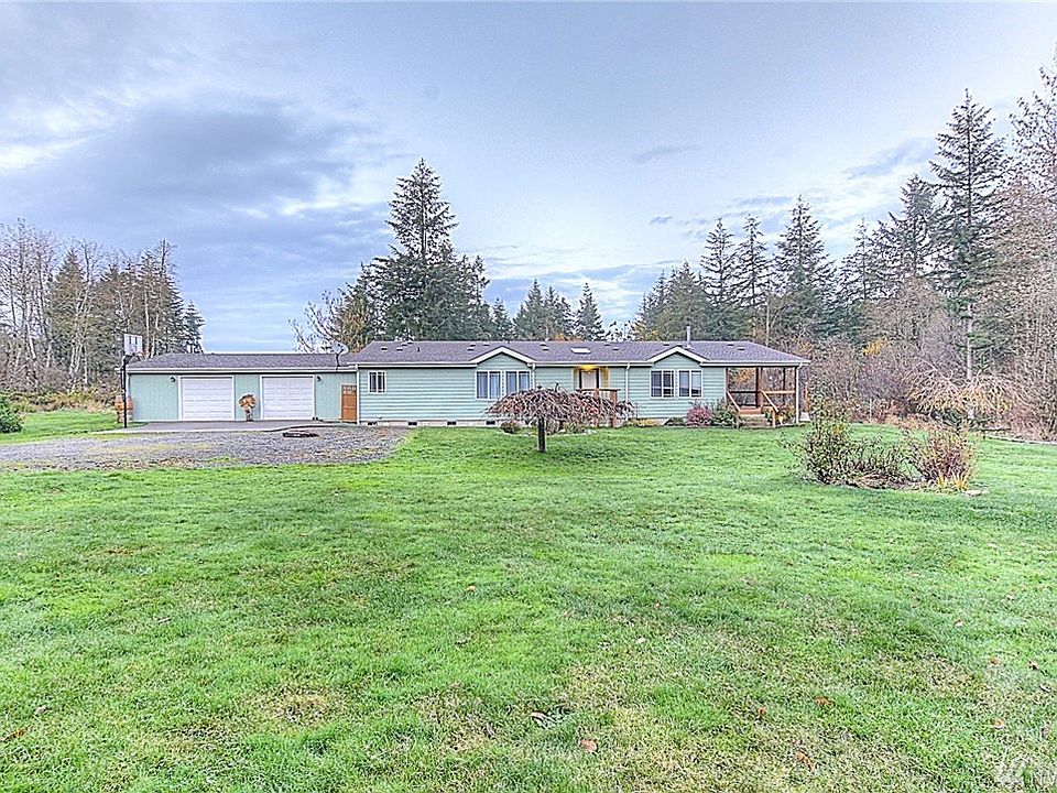 The privacy you've been waiting for. 20± acre estate with large 2528±sqft 2 bedroom, with ensuite bathrooms plus den. Amazing kitchen opens to main living with cozy wood burning fireplace and picturesque windows lookout out to nature. Beautiful covered porch for year around entertaining. Large attached 2 car garage with private office space. Fresh paint inside and out. Easy access to I-5. Make this park-like property yours today!