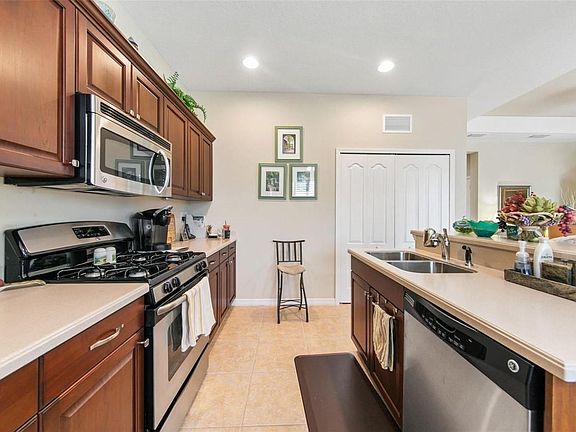 This beautiful home is situated in the Brickell Park community within the gated Central Park of Lakewood Ranch. It boasts 3 bedrooms and 2 full bathrooms. The kitchen and bathrooms have Corian countertops, and there is a 2-car garage. The property is located on a spacious corner lot that offers space for a pool. The appliances are stainless steel, and the stove runs on gas ,The A/C unit is brand new as of 2023. The home also features a double-sized screened-in patio, and the washer and dryer are included