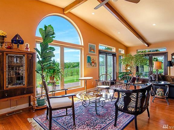 Italian inspired estate with established vineyard and expansive Mt Baker view. Classic touches radiate from this custom home with stained glass and granite throughout, antique chandeliers, hand troweled fireplace, tasting room/wine cellar, Trex deck, imported Italian tile & bamboo flooring. Chef's kitchen with Viking range/hood, warming drawer, double oven, wine fridge and soft close cabinetry. 30X48 shop with workshop, cool room & loft storage. Artist's studio with picture window and 1/2 bath.