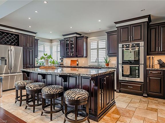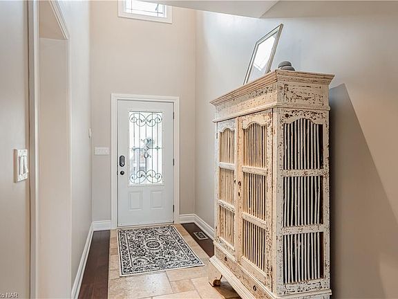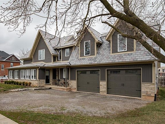 Stunning DUPLEX situated on a large 99.02' x 220.3' deep lot with an detached post and beam barn with concrete floors and hydro, located at the back of the property. As you enter the main unit it boasts a stunning custom kitchen complete with top of the line stainless steel appliances, dark wood cabinetry, granite countertops and a large functional island, perfect for entertaining! Steps away the living room and dining room features richly coloured hardwood floors and a cozy gas fireplace to enjoy. The upper level offers 3 bedrooms, 2 bathrooms and a laundry room. Relax in the master bedroom which features a double-sided fireplace leading into the ensuite. The ensuite includes heated floors, double sinks and freestanding soaker bathtub. The second unit is currently tenant occupied at $1,400 plus utilities monthly. This home contains a nice sized living room and a beautifully updated eat-in kitchen complete with its own walk-in pantry, main floor laundry and a 2 piece bathroom. Upstairs there are 2 bedrooms and a tastefully renovated bathroom. Each home has a large private patio to enjoy a glass of Niagara's finest. Imagine one unit contributing to your mortgage or 2 FAMILIES sharing expenses but enjoying the closeness this property offers. Looking for a property that you can work and live in? This property has endless possibilities with its COMMERCIAL ZONING you have so many options. This property is conveniently situated beside a quiet plaza, close to schools and all amenities. This is a rare property that was custom built in 2008, each side functions separately with its own hydro, furnace and central air units. Stunning armour stone landscaping outdoor lighting and the attached 2 car garage finishes off this perfect custom ONE OF A KIND home.Put this on your must see list.