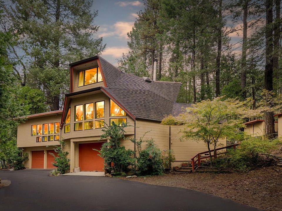 Step inside a home that feels alive in every season. A four-bedroom geodesic mountain chalet where light, warmth, and forest views surround you. Custom designed with cedar-tone siding, redwood accents, and soaring geometry, this home celebrates its natural setting with walls of glass and skylights that shift with the day's light. Gather by one of two wood-burning fireplaces, the crackle echoing softly through the open living spaces. The flow is effortless; from the bright kitchen and cozy nooks to the inviting patio that opens to the scent of pine and fresh mountain air. The main suite is a retreat of its own, featuring a serene sitting area with a wood stove, a generous walk-in closet, and a spa-like bath with soaking tub, stand-alone shower, and thoughtful touches throughout. Vaulted ceilings and intentional lines create an easy sense of calm, whether you're entertaining or simply listening to the wind through the trees. The spacious garages offer room for adventure gear or creative projects. Located minutes from Foresthill Divide trails, local lakes, and the historic town center. With easy access to Auburn, Roseville, and Sacramento's Amtrak line. A rare combination of modern comfort and geodesic charm, this chalet captures exactly what mountain living is meant to feel like.