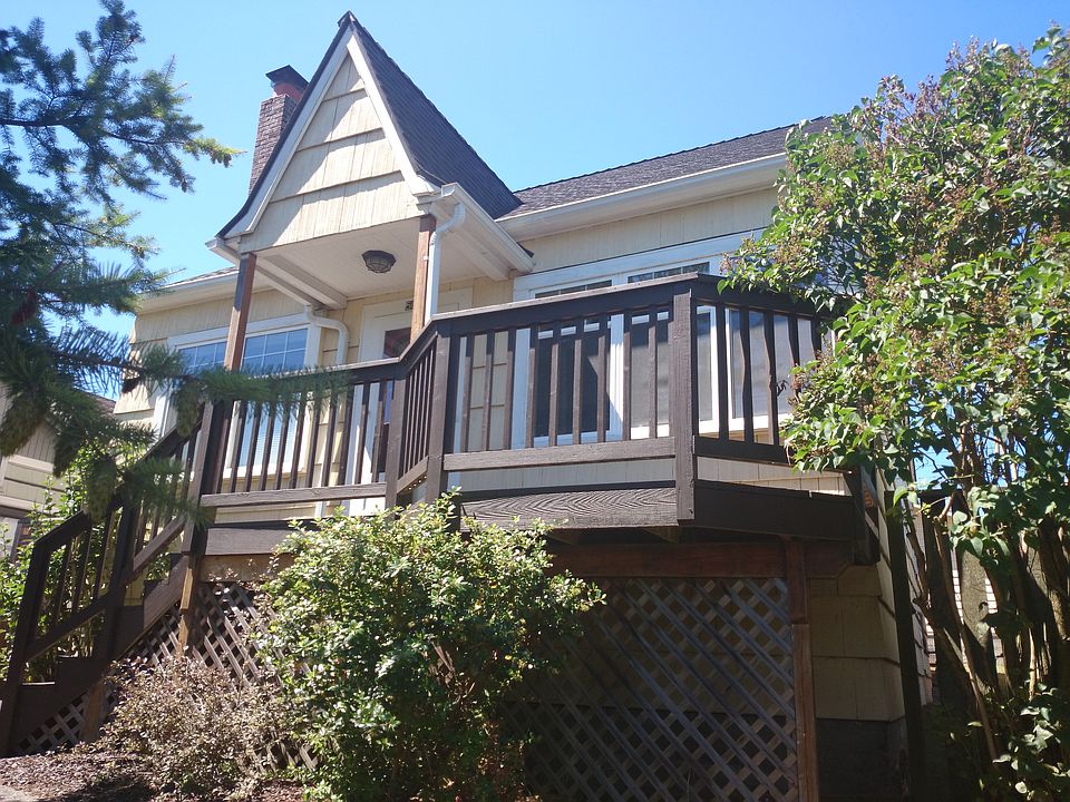 Charming Tudor perched high above the street with seasonal views of mountains and Seattle skyline. Old world charm throughout including hardwoods, coved ceilings, classic fireplace and millwork. Many upgrades including updated bathrooms, high efficiency gas furnace, roof, fiber cement siding, Low-E insulation, and double pained windows. High ceilings in basement for potential expansion. Yard is fully fenced with off street parking in alley. Located on bus line with quick and easy access to downtown Seattle, Alki, Alaska Junction and more! Come enjoy West Seattle!!