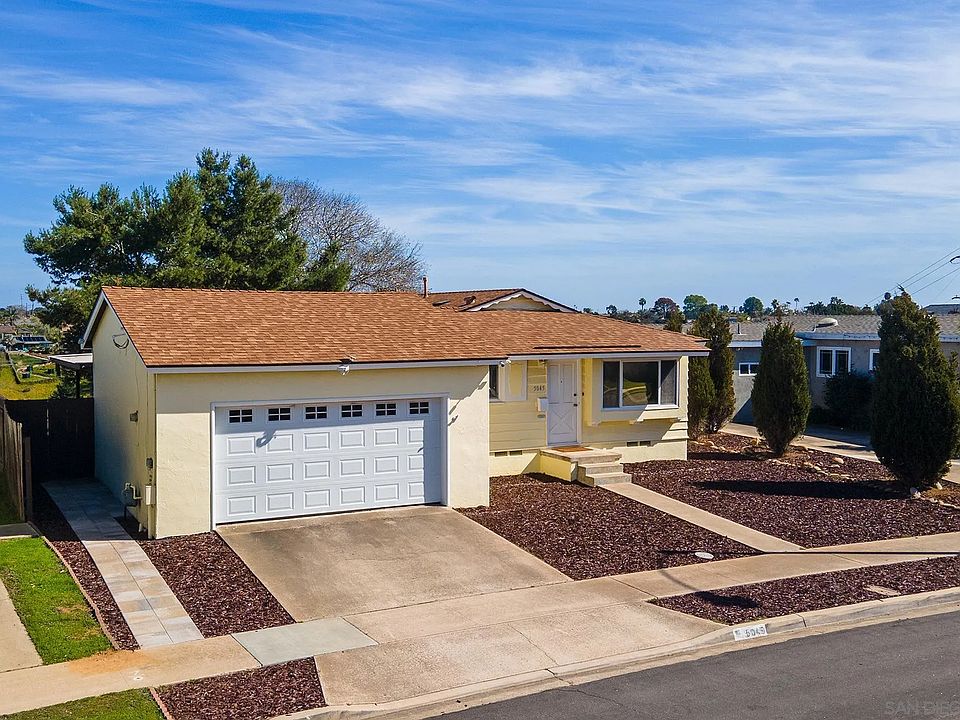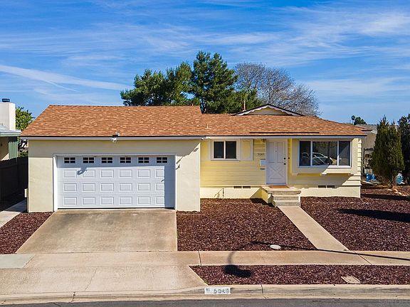 Charming Home with Endless Potential on a Private Cul-de-Sac street! Discover this cozy 3-bedroom, 2-bathroom home, perfectly situated in a prime location. Featuring original wood floors, vinyl shutters, and a sliding door leading to a covered patio, this home blends classic charm with modern convenience. Recent updates include a newer roof and water heater, plus a freshly painted exterior ready for you to add your personal touches! Sitting on a one-of-a-kind 14,600 sq. ft. flat lot on a canyon bluff, the possibilities are endless! Create your dream backyard with space for a vegetable garden, fruit trees, a pool, or even chickens a rare find. This home offers easy access to CA-52, I-5, and CA-805, and is just minutes from La Jolla, UCSD, Marian Bear Memorial Park, shopping, dining, cinemas, and more! Don't miss out on this incredible opportunity!
