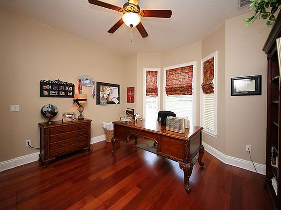 A William Fenzau Enterprises Victorian Masterpiece with elegance and attention to detail. Mahogany leaded-glass doors lead to an expansive foyer with curved staircase and rotunda, gleaming 5/8" engineered mahogany floors and 7 1/4" baseboards. The sumptuous main floor master--to the left through a second foyer with French doors to the lanai--has gas fireplace and dual walk-in closets with John Louis cabinets and organizers. Marble floor and countertops highlight the master bath with free-standing soaker tub, dual vanities with Ethan Allen mirrors, and glass shower with river rock floor, twin shower heads and 4 wall jets. The kitchen boasts gleaming granite countertops, Kraftmaid custom cabinets, Jenn-Aire and Bosch stainless appliances, gas cooktop with pot filler; island with marble top, butler's pantry with marble countertop and beverage cooler, walk-in pantry and separate breakfast room with bay window. The great room has 21'8" tray ceiling with crown molding and gas fireplace with marble hearth. Upstairs is a loft area overlooking the family room, rotunda with sitting area, two add'l bedrooms with Jack & Jill bath and 4th bedroom with private bath. The main floor office with closet can serve as bedroom 5. Two bonus rooms with full bath can be a home school or man cave. In back, there's a huge pavered patio with covered areas, gas fireplace, outdoor kitchen and yard with room for pool and play. Central vac, designer lighting and fans, security system, double-pane cased windows, 4-car garage and more!