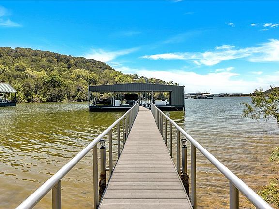 Experience lakeside living at its finest! This comfortable two-story home on Possum Kingdom Lake s west side offers a private, serene retreat in a small, protected cove. With 4 bedrooms and 3 bathrooms, the second floor is devoted entirely to a spacious master suite featuring dual walk-in closets, an ensuite bathroom, an office, and tranquil views. The eat-in kitchen and living room flows into a large screened-in porch perfect for enjoying the outdoors. A first floor bedroom with ensuite bath offers versatile space for a potential second master, bunk room, or game room. The property also includes a substantial metal building ideal for a workshop and storing lake toys, and an exceptional newer dock for all your water adventures. Conveniently located near Graham for shopping and dining, this home is a true gem on Possum Kingdom Lake.