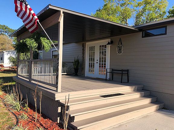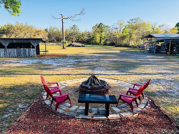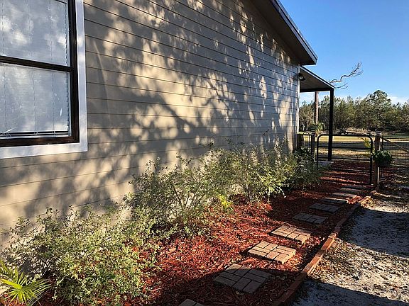 Your country cottage awaits! Beautifully remodeled home sitting on a fantastic 2.43 acres in Mims with a new paved road. The impressive renovations are vast and include a Hardy Board exterior, metal roof, air conditioner, popcorn ceiling removed and retextured, laminate wood and tile flooring, complete refurbish of both bathrooms, kitchen expansion and upgrade, and much more! This home has a whole house generator installed as well. Two multi-purpose outbuildings presently used for a shop and covered parking. Upgraded electricity in the shop and plenty of cover for working or storing boats and toys. The septic system has been serviced and is in great condition. Move in ready with no stress! Lots of room to play and then relax by the fire pit as you star gaze.