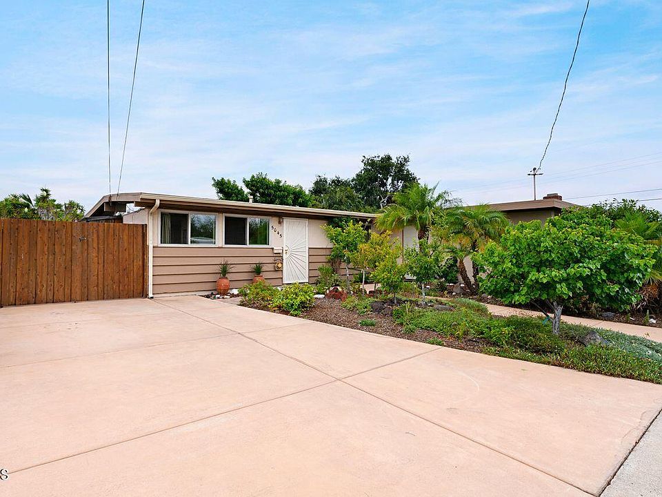 A wonderful opportunity presents itself again! This cozy N Clairemont home has an open floor plan with natural light and westerly breezes. Enjoy a spacious, thoughtfully landscaped drought tolerant yard with an abundance of fruit trees that only require minimal watering. This home has been very well cared for with features to include sprinkler system, large covered patio, recently painted interior and exterior, newer driveway, roof, wood fencing, shed, gutters, windows and hot water heater. Additional features, three ceiling fans, wall heater, W/D hook up inside (possible to modify for stack W/D). Upgrades to include remodeled bathroom, mini split AC/heat, vinyl plank and tile flooring. Possible ADU/garage conversion and RV parking. Located near restaurants, shopping, freeway access, parks and beaches. This home is ready for your personalization! Some of the interior photos are virtually staged.