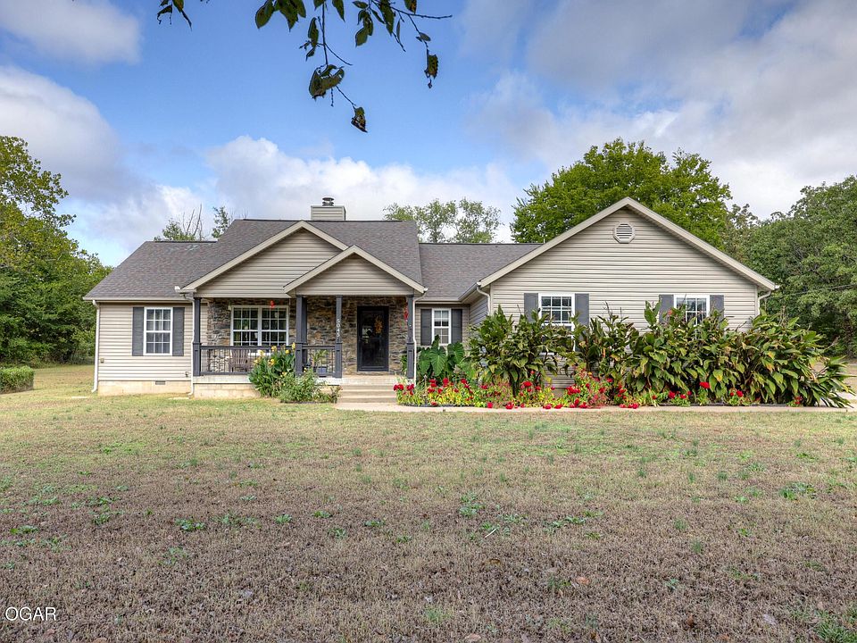 Newer home with that country living feel! This 3 bed 2 bathroom home sits on a beautiful 1.3 acre lot just moments from Carl Junction and Joplin. This custom built has many exceptional features that separate it from most cookie cutter new builds. Upon entering you are greeted with beautiful vaulted ceilings and a double sided fireplace that opens into the kitchen/dining room. There are 2 bedrooms and a bath on the West side of the home. To the East is the master suite with a massive walk in closet. The 2 car garage allows for covered parking or additional storage depending on your needs. Come take a look today!
