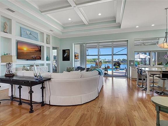 Rarely available, this meticulously maintained Jasmine Grande residence captures expansive private water views from nearly every room. Offering two spacious bedrooms, an office/den, a versatile flex room with wet bar, and 2.5 baths, the home blends everyday comfort with refined living. The impressive great room showcases 14-foot double tray ceilings, crown molding, and abundant natural light—an ideal backdrop for stylish entertaining. Seamlessly connected, the gourmet kitchen is a chef’s delight, featuring stainless steel appliances, granite countertops, and an oversized island with seating for four. A true showpiece, the Eastern-facing screened lanai is designed for relaxation and entertaining alike. Enjoy the sparkling pool, fully equipped outdoor kitchen with grill, and multiple seating areas—all while taking in tranquil water views. Set at the end of a quiet cul-de-sac with water wrapping two sides, the property offers unmatched privacy. Notable upgrades include 10-foot pocketing impact sliders, hurricane screens on the lanai, rich wood and tile flooring, and even an insulated garage door for year-round comfort. Beyond the home, the Isles of Collier Preserve spans 2,400 acres of pristine lakes and nature preserves, offering endless opportunities for recreation. Residents enjoy scenic walking and biking trails, kayaking, paddleboarding, tennis, pickleball, bocce, and a dog park. The community clubhouse features a state-of-the-art fitness center, resort and lap pools, and the inviting Overlook Bar & Grill. Perfectly located just minutes from Old Naples’ shops, dining, and beaches, and moments from the Naples Botanical Garden and acclaimed Naples Pickleball Center, this home offers the ideal blend of luxury, privacy, and vibrant community living.