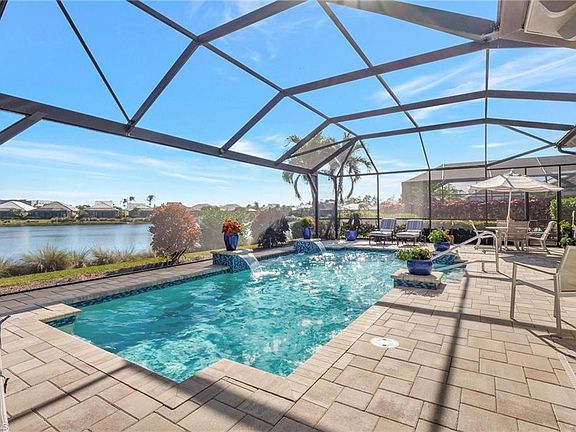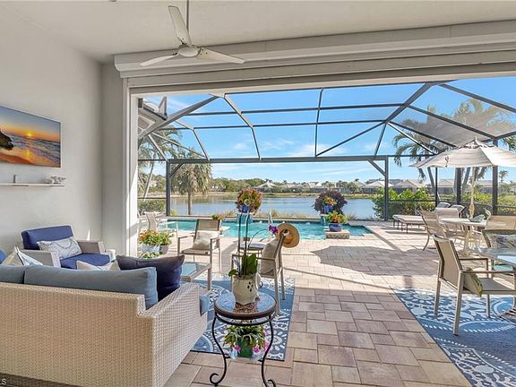Eastern-facing screened lanaiGranite countertopsAbundant natural lightOutdoor kitchen with grillSparkling poolImpressive great roomTranquil water views