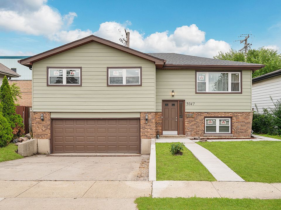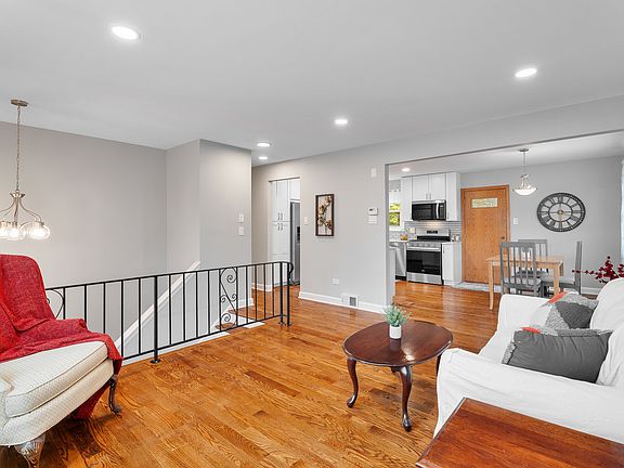 Welcome Home! Ready to move in. A fully updated 3 bedroom 2 bath true raised ranch combining modern style with comfortable living features a bright open floor plan. Brand new hardwood on the main floor. Spacious living room. Dining room opened up to the brand new kitchen. White shaker cabinets, quartz counter tops, glass backsplash and brand new Whirlpool stainless steel kitchen appliances. Side by side refrigerator with water/ice dispenser. 5 burner gas range, dishwasher, and an over the stove microwave. Access out to a private wood deck from the dining room. Brand new windows. New 1st floor bath features ceramic tile in the tub with a shampoo cut out, ceramic tile floor, double vanities, quartz counter top, new fixtures, lights, mirrors, and exhaust fan. Three spacious bedrooms all have double door closets. Double door coat closet and a linen closet. Lower level adds more living space with a versatile family room, bath and laundry room. All new vinyl flooring. Sliding glass doors out to the yard. 2nd bath features a new shower with ceramic tile walls and new fixtures. A new Rheem 40 gallon hot water heater. Privacy fenced yard with a cement patio. New concrete. Attached 2 car garage with cement side drive provides convenient parking and storage. State of the art schools. Great location. 7 minutes to Rosemont Entertainment District and Fashion Outlet of Chicago. 5 minutes to I-294 and I-90 entrance ramps. 8 minutes to O'Hare Airport. Couple block walk to the Metra train going downtown. The Rivers Casino and Allstate Arena less than a 10 minute drive. Come take a look.