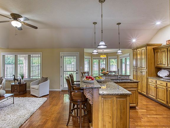 River Roads Subdivision tucked in walking distance between 2 Elementary Schools and on a quiet street with Mature Trees. This All Brick home with 3 Car Garage has a lot to offer with Hardwood Flooring, Crown Molding, Six panel doors, Alder Cabinets Corner Glass Cabinet, Chefs Pantry with pull out drawers, Granite Counters, New Disposal and Dishwasher within the last 2 years, Refrigerator stays with the property as well as the barstools. Heath room gas fireplace, open floorplan with kitchen bar and kitchen dining. Bay windows perfectly set between master suite covered patio and hearth room covered patio. Privacy fenced with gates on both sides. Formal Dining, raised ceilings, large utility room with 1/2 bathroom. Master suite with jetted tub dual sinks and walk in shower and spacious walk in closet. Access to private covered patio.