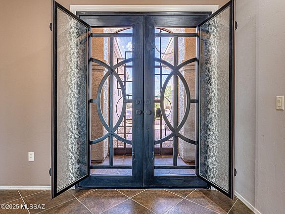 Gorgeous Views, Fashionable Design, and Perfect Positioning! This exceptional property has been impeccably remodeled with unique modern features and offers 2 Bedrooms, 2 Bathrooms, a Den, a versatile Bonus room, and an Arizona room - all enhanced by gorgeous mountain views. The property is range-priced, with the seller open to negotiating offers between $550,000 and $580,000. The entry welcomes you with striking steel and glass doors that open into a spacious living room with tile floors, setting the tone for a warm yet contemporary feel. The kitchen is a highlight with granite counters, cherry cabinetry, stainless steel appliances, a gas stove with convection oven, an instant hot water dispenser, and a breakfast bar with modern pendant lighting that flows into the spacious dining area. The owner's suite serves as a private retreat and has access to the AZ room. It includes a generous walk-in closet and an en-suite bathroom with quartz counters, modern double vessel sinks, smart mirrors, and a sleek walk-in shower framed in amber-tinted glass. The guest bedroom and bath continue the home's updated style, offering visitors a comfortable and modern stay. The den provides flexibility for use as a home office or media space. The bonus room stands out with custom floor-to-ceiling built-ins and a wet bar, making it an excellent spot for hobbies or crafts. The Arizona room is an ideal place to relax while taking in mountain views, seamlessly extending your living space. The backyard has been designed for outdoor enjoyment, featuring a water feature, pavers, a lovely desert landscape, and a covered porch. A few of the additional features include Triple-pane Anderson windows, remote-controlled shades, ceiling fans in every room, a custom wrought-iron front door, an expanded two-car garage with ceiling-mounted storage racks, a roll-down screen, a utility sink, a water softener loop, and more. Located just minutes from the Green Valley Recreation Center, you'll enjoy access to top amenities, including a fitness center, pool, pickleball, art classes, and countless activities. Age restricted 55+